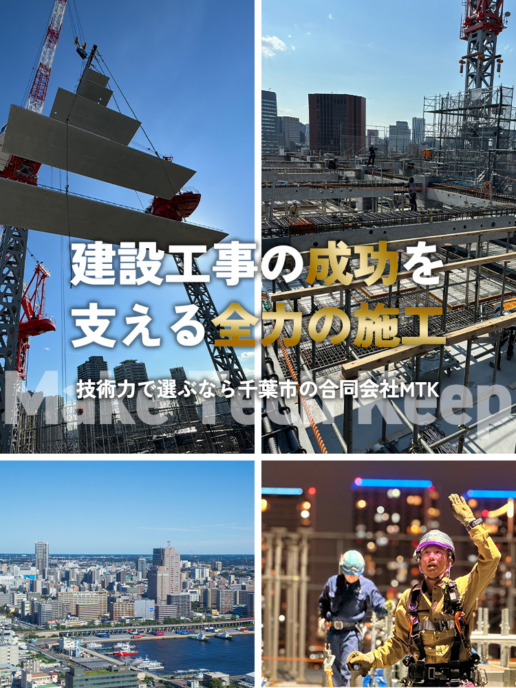 千葉市の合同会社MTKは、PC工事をはじめとした 躯体工事のプロフェッショナルとして 関東全域のさまざまな建設プロジェクトの 成功を支える施工をお届けいたします。